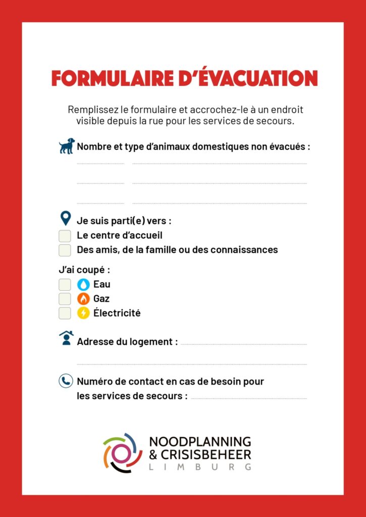 Dans des situations exceptionnelles, il peut être nécessaire de quitter temporairement votre habitation, par exemple en cas d’incendie, d’inondation, d’incident chimique ou d’une autre situation d’urgence. Sur cette page, vous trouverez des informations claires sur quand et comment évacuer, ce qu’il est préférable d’emporter avec vous, et où vous pouvez vous rendre.